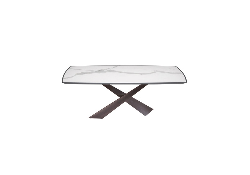 Living designed by Riflessi is a table with top in thermo-treated coke oak or canaletto walnut beveled wood with ceramic insert. Base in painted aluminum. Available in different dimensions.
