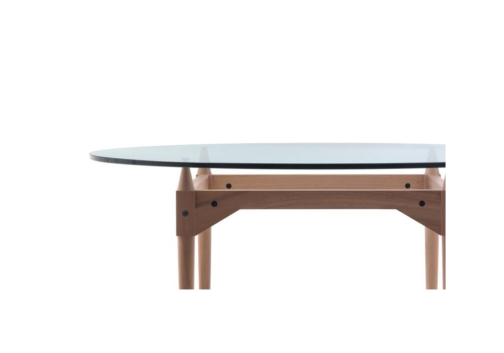 839 TL3 designed by Franco Albini for Cassina is a table with a glass top and a base in solid ash or Canaletto walnut.