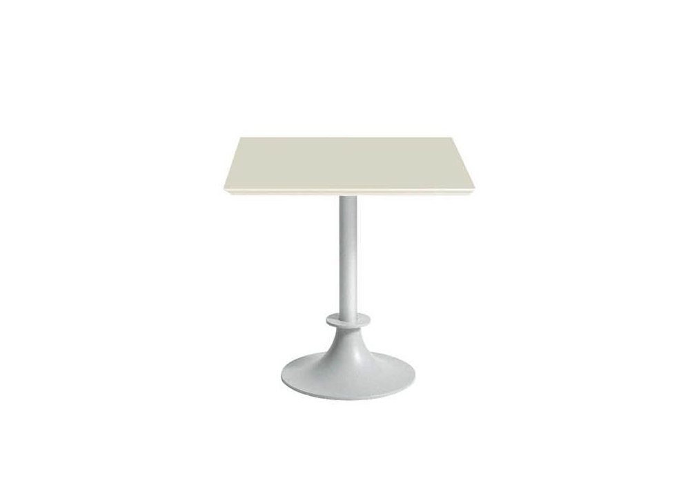 Lord YI designed by Philippe Starck + Palomba for Driade is a table with base in painted cast aluminum and column in anodized aluminum. San top with surface finish made by hand shaving with a spatula a compound based on mass-colored clay. The nuances of manual application characterize the aesthetics of the product. The final treatment makes the product water repellent and stain resistant. Indoor and outdoor use.