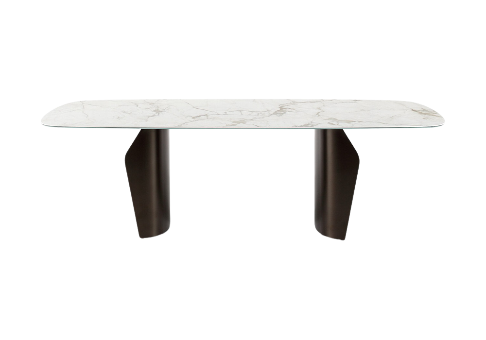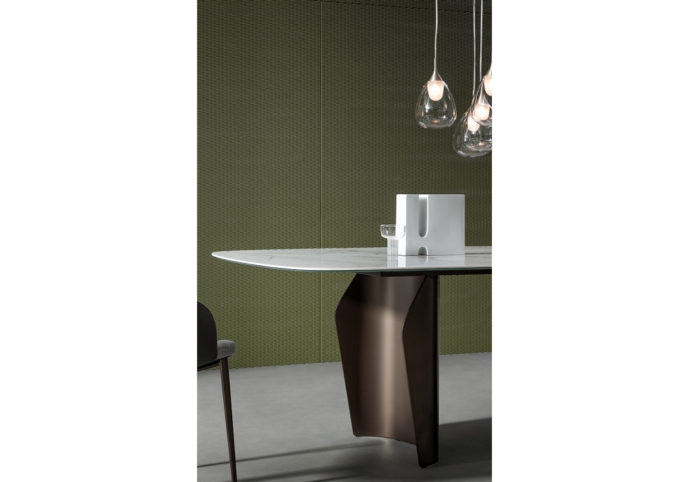 Flame designed by Gino Carollo for Bonaldo is a table with metal base painted in different finishes and top made of various materials. Available in 2 sizes.