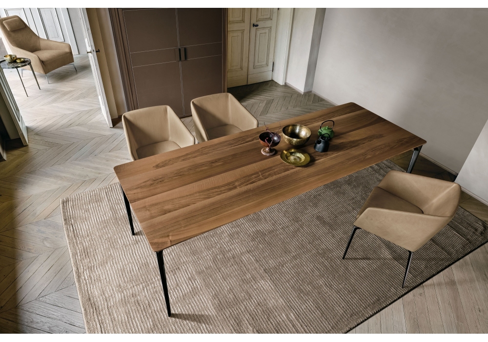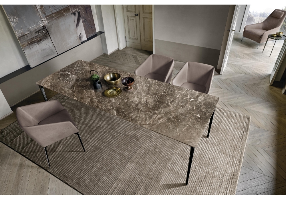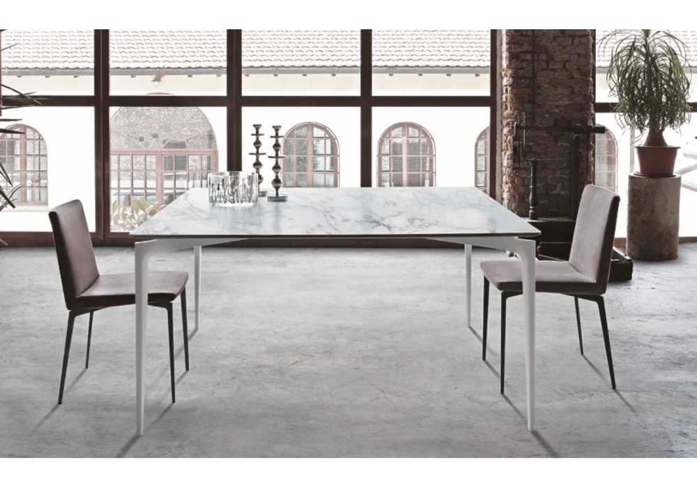 Liuto designed by Giuseppe Bavuso for Alivar is a square or rectangular table made with legs in chromed, painted or black nickel cast aluminum. Top in tempered smoked glass, heat-treated oak or black wedges, Italian walnut, marble or ceramic coupled with extra-clear transparent glass. Available in different finishes and dimensions.