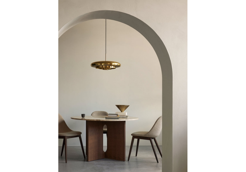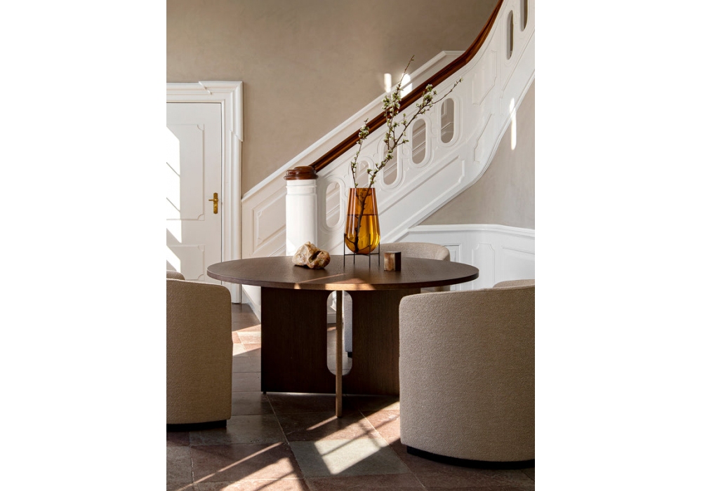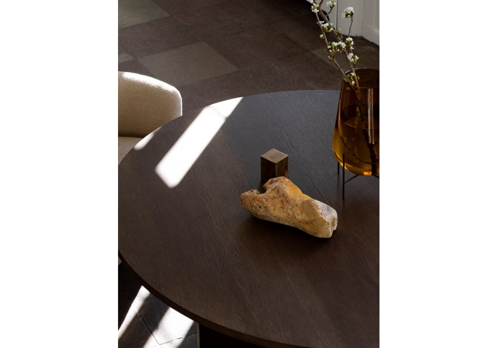 Androgyne 120 designed by Danielle Siggerud for Audo Copenhagen is a round table with oak base and top in the same finish as the base or in Kunis breccia stone. Available in different finishes.