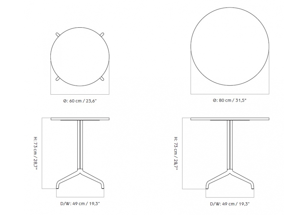 | Height | • 73 cm; • 93 cm; • 103 cm |