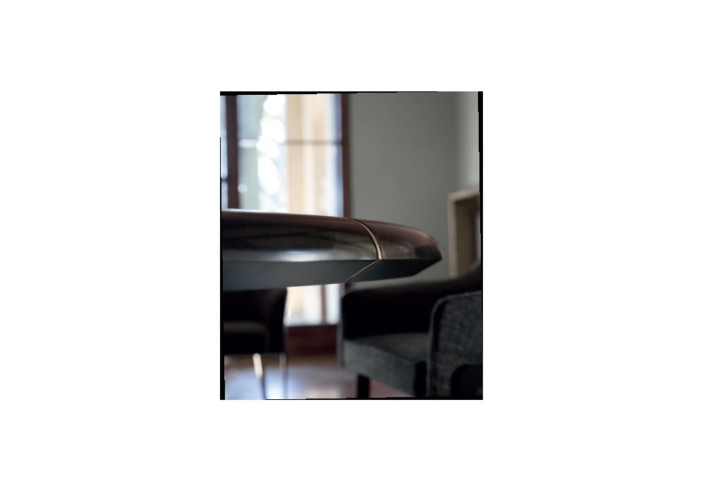 Oliver designed by Castello Lagravinese Studio for Opera Contemporary is a round table made in frisé maple with metal inserts and marble Lazy Susan. Available in different dimensions.