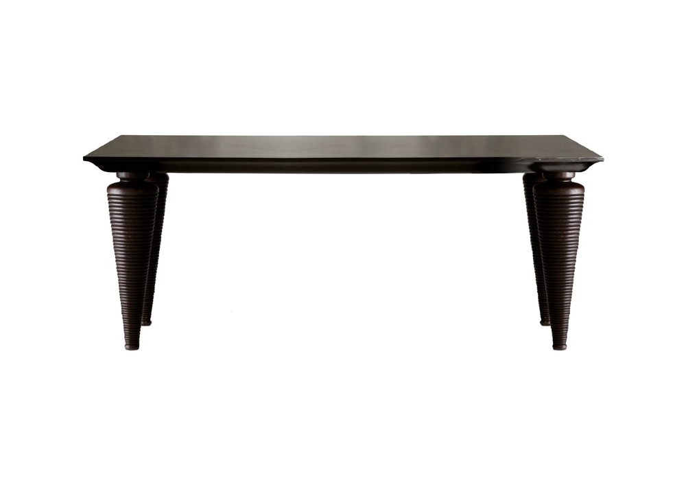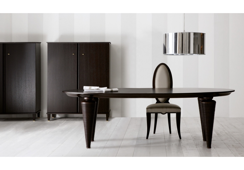 Fidelia designed by Castello Lagravinese Studio for Opera Contemporary is an oval or rectangular extendable table made of wood with retractable extension. Available in different finishes and dimensions.