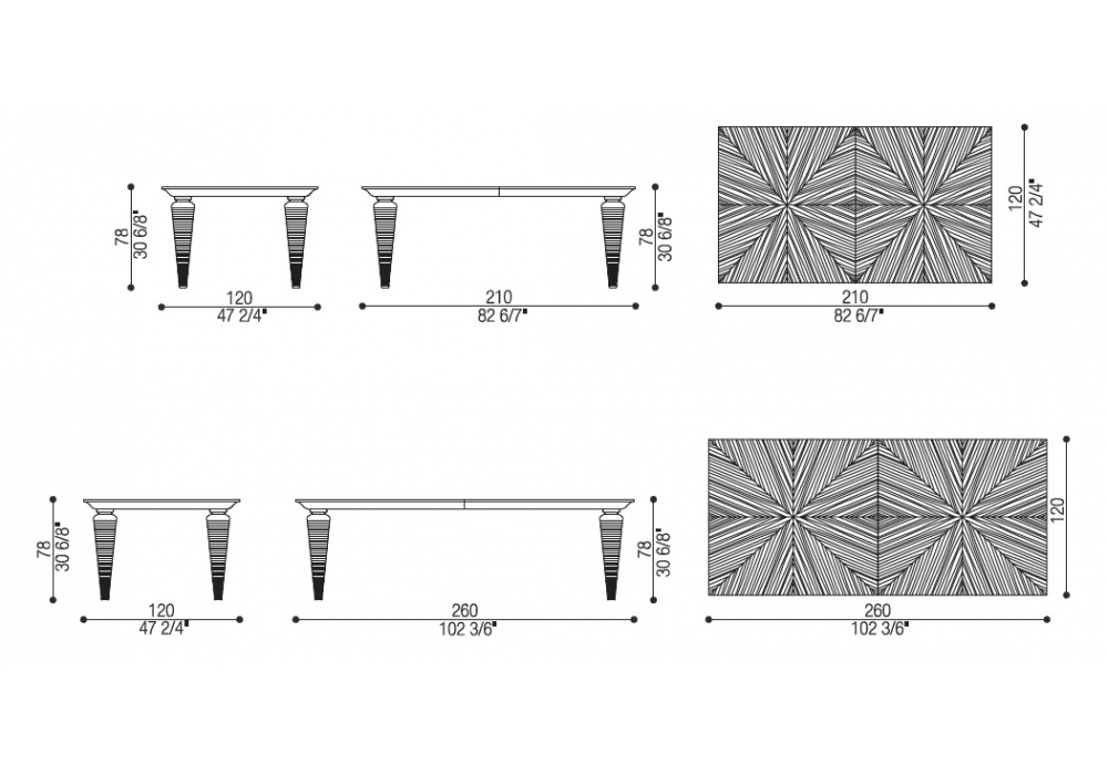 | Dimensions | 230/280 x 120 x H 78 cm (Oval); 280/330 x 120 x H 78 cm (Oval); 210/260 x 120 x H 78 cm (Rectangular); 260/310 x 120 x H 78 cm (Rectangular); |