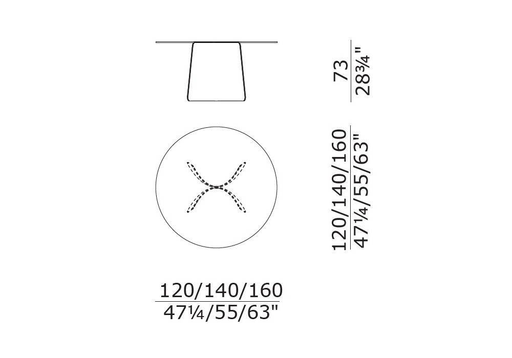 | Dimensions | • Ø 120 x H 73 cm; • Ø 140 x H 73 cm; • Ø 160 x H 73 cm |