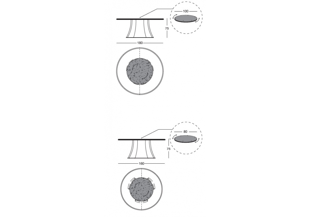 | Diameter | Ă˜ 160 cm; Ă˜ 180 cm. |