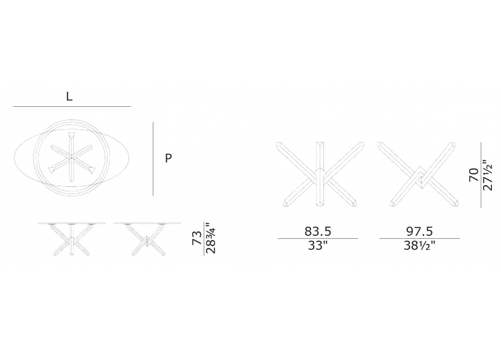 | Dimensions | • Ø 140 x H 73 cm; • Ø 160 x H 73 cm; • Ø 180 x H 73 cm; • 240 x 120 x H 73 cm |