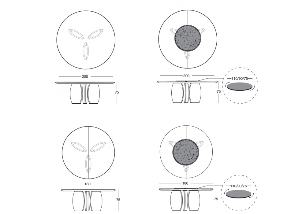 | Diameter | Ø 200 cm; Ø 180 cm. |