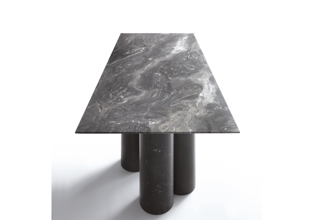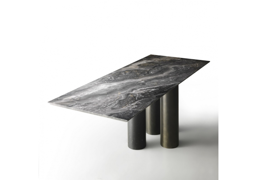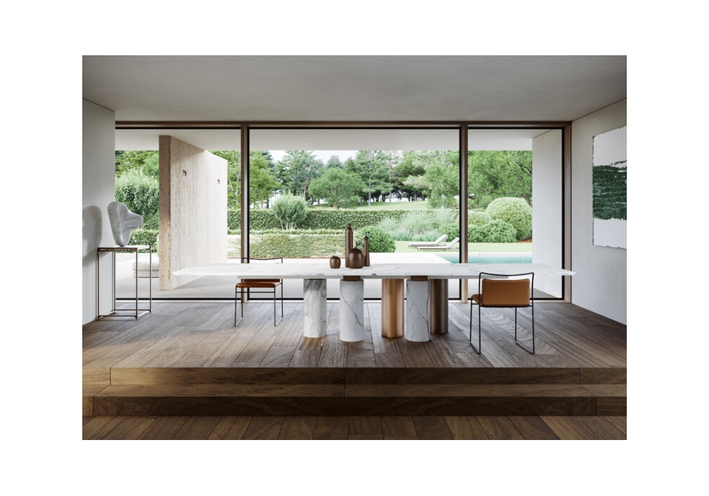 Arcaico designed by Enzo Berti for Kreoo is a table with round or rectangular top made of marble or wood veneer. The base, made up of cylinders, is made of marble or metal. Available in different dimensions.