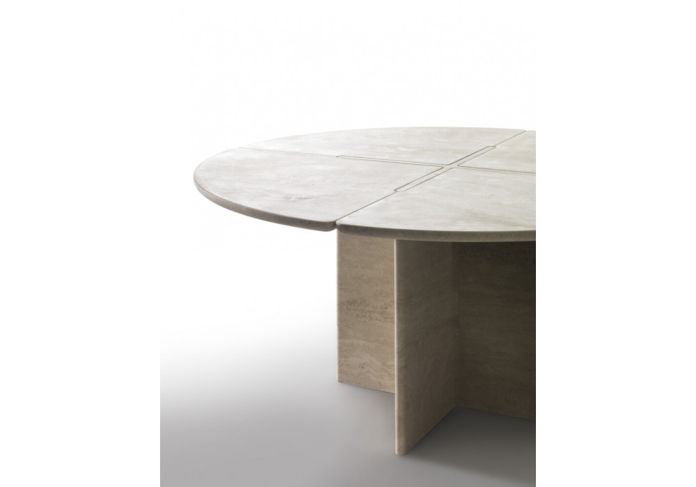 More designed by Marco Spatti for Kreoo is a round table made of marble. Available in the version with or without central metal cross detail.