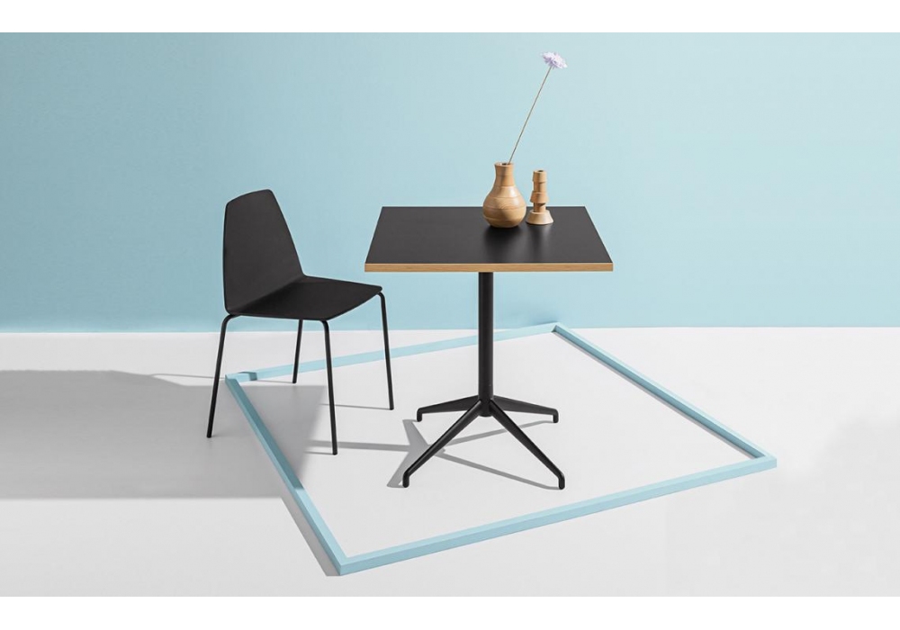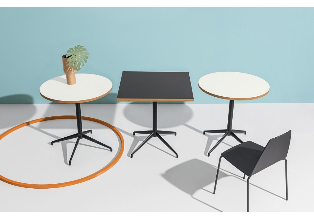 Alis designed by Discipline Lab is a coffee table with oak or laminate top, aluminum base. Available in different finishes and sizes.
