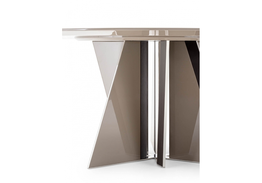 Milano designed by Blengini Ghirardelli for Turri is a round table with base in glossy lacquered MDF with inserts in leather and top in marble or glossy lacquer. Available in the version with or without Lazy Susan turntable.