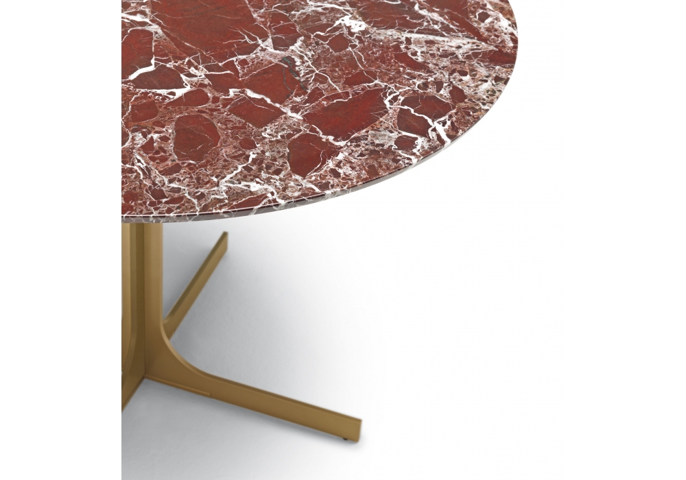 Janus Lounge designed by Francesco Lucchese for MisuraEmme is a table with structure characterized by a coupling of two double "C"s in metal, so as to form a cross, in nickel-gold finish. Top in marble, matt or glossy essence or in glass. Available in different finishes.