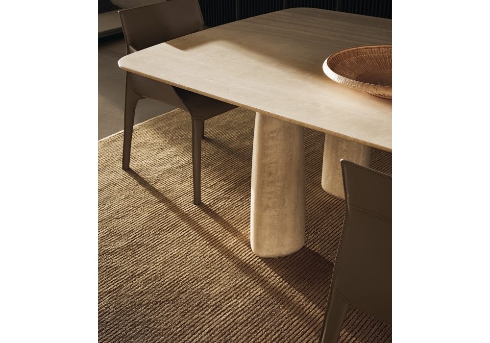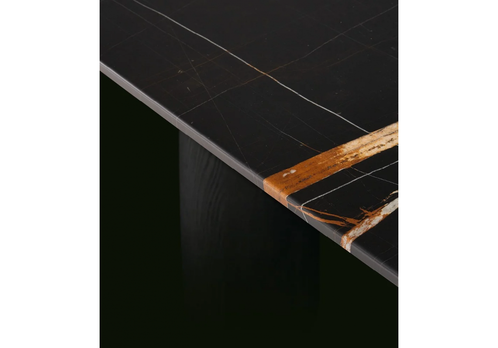 Monolith designed by Emmanuel Gallina for Poliform is a table made with legs in solid black elm or in open-pore polished travertine marble. Top in black elm, polished travertine marble or polished and polished marble. Available in different dimensions.