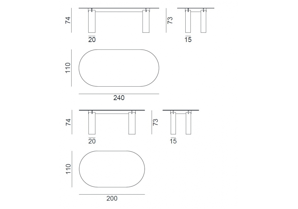| Dimensions | 240 x 110 x H 74 cm; 200 x 110 x H 74 cm. |