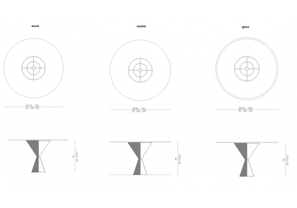 | Dimensions | Ø 140 x H 75 cm; Ø 160 x H 75 cm. |