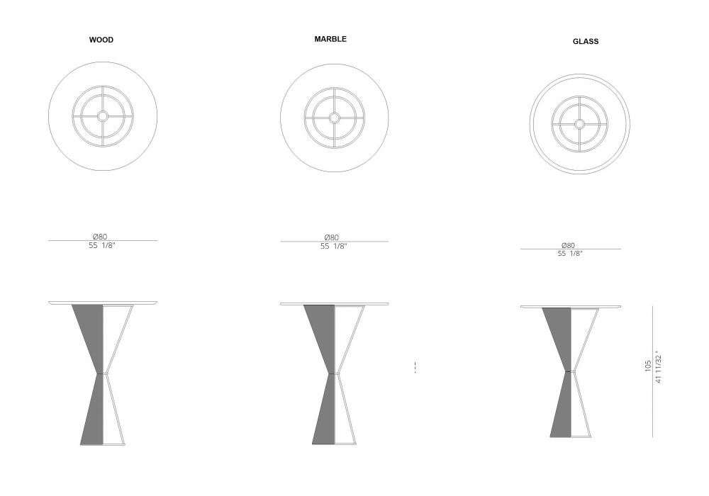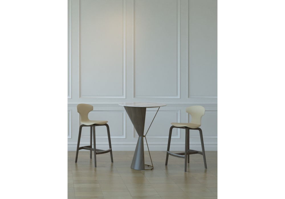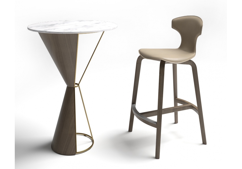 Essential designed by Serra By Milia for Escooh is a bar table with base made up of two overlapping truncated conical elements in metal or wood veneer. The top is made of glass, wood or marble.