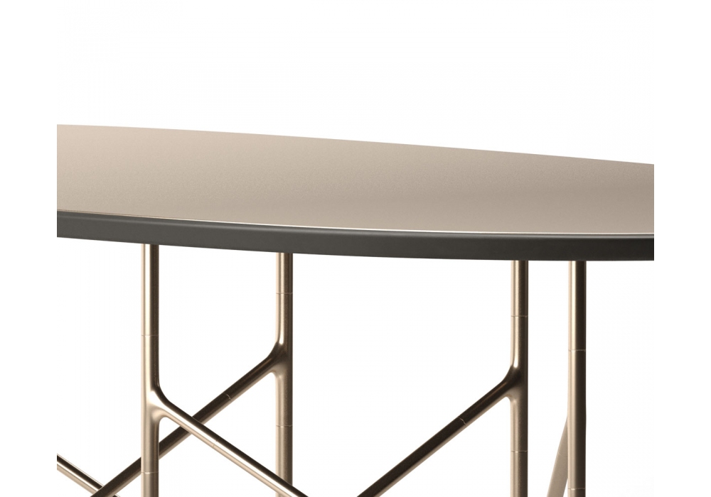 Alexander Oval designed by Marco Piva for Casamania & Horm is a table made with die-cast metal legs that can be assembled in different ways and composed of two elements plus a Y-joint. A joint junction like the Alexanderplatz in Berlin. Available in four different sizes, even the top can have different finishes from marble to metal, to back-painted glass.