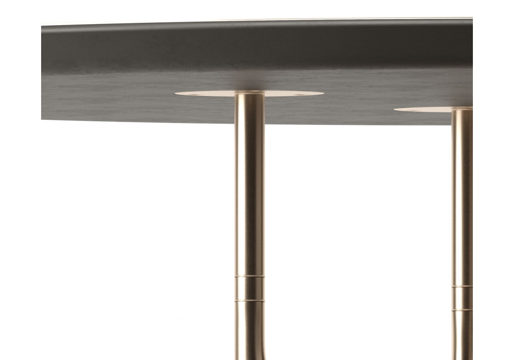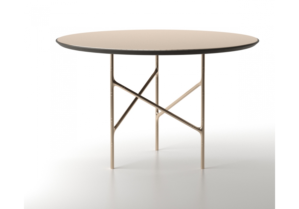 Alexander Round designed by Marco Piva for Casamania & Horm is a table made with die-cast metal legs that can be assembled in different ways and composed of two elements plus a Y-joint. A joint junction like the Alexanderplatz in Berlin. Available in four different sizes, even the top can have different finishes from marble to metal, to back-painted glass.