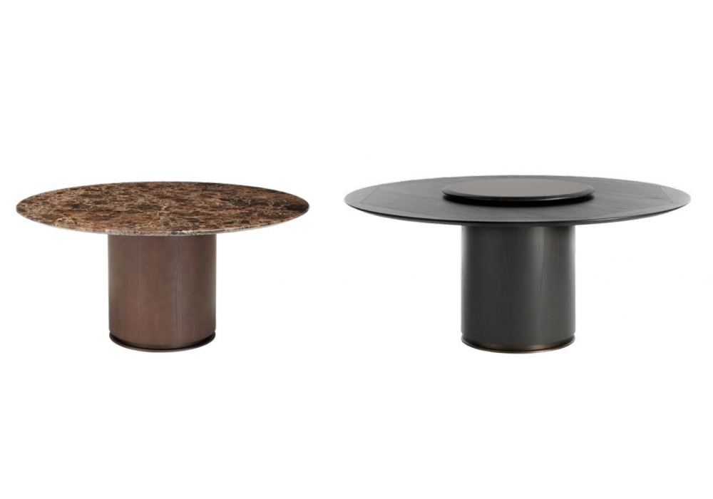 Otab designed by Gabriele and Oscar Buratti for Potocco is a round table with base in ash or matt Canaletto walnut and top in different marble finishes. Available with or without Lazy Susan turntable.
