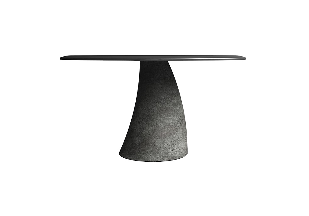 Malone designed by Saverio Incombenti for Minotti Italia is a table with central base in white or anthracite concrete, top in oval or round chipboard in super matt finish. Available in different colours.