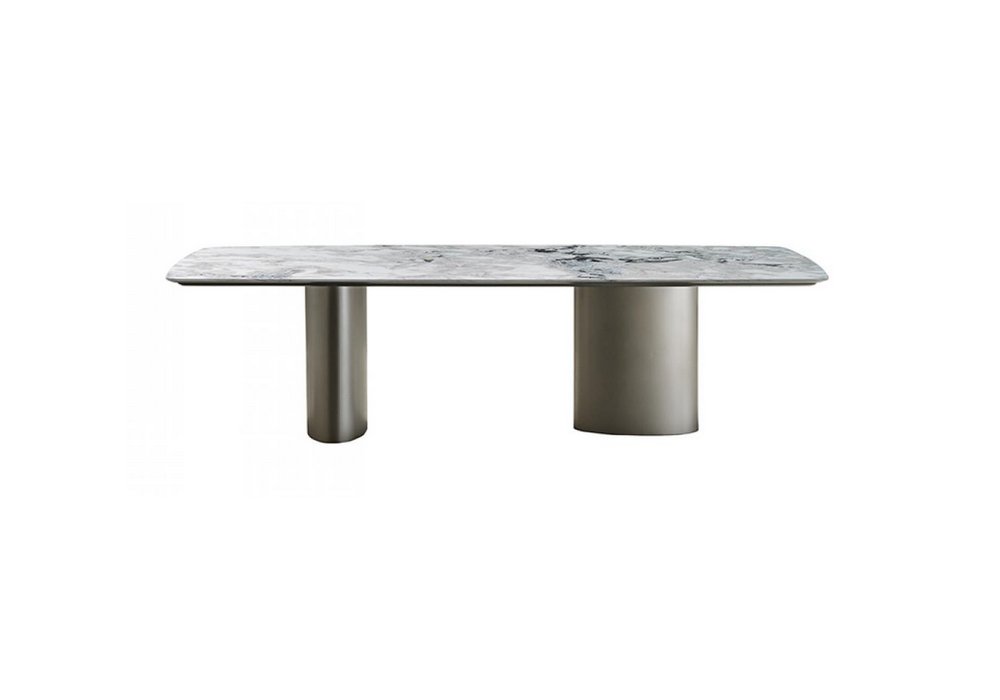 Tangeri designed by Roberto Lazzeroni for Casamilano is a table with marble top and oval legs in painted metal. Undertop in lacquered MDF.