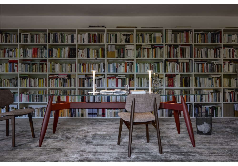Fusello designed by Molteni / Baron associati for Alf Dafrè is a table with structure in oak or fashion wood and top in Nero marquina marble.