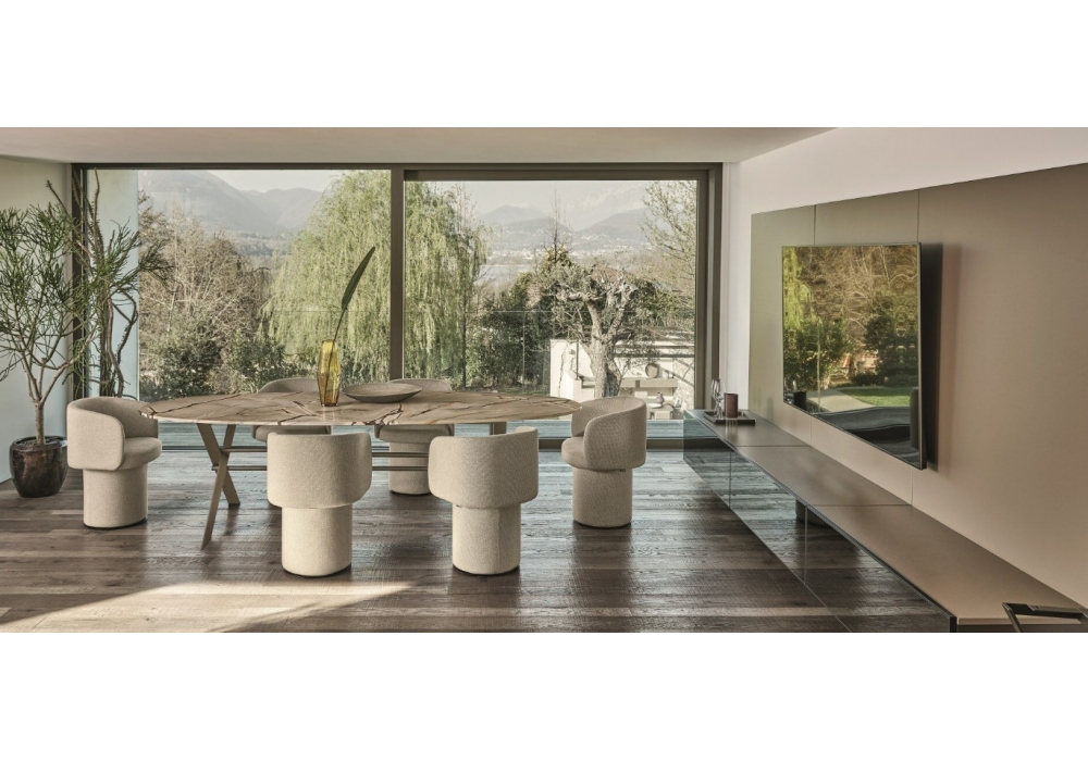 XCS designed by Gabriele and Oscar Buratti for Ditre Italia is a table with metal supporting structure with ionx steel tip, top in marble or wood. Available in different finishes and sizes.