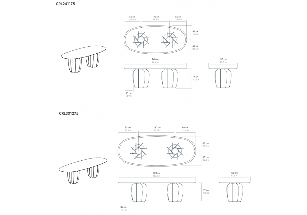 | Dimensions | 240 x 110 x H 75 cm; 300 x 120 x H 75 cm. |