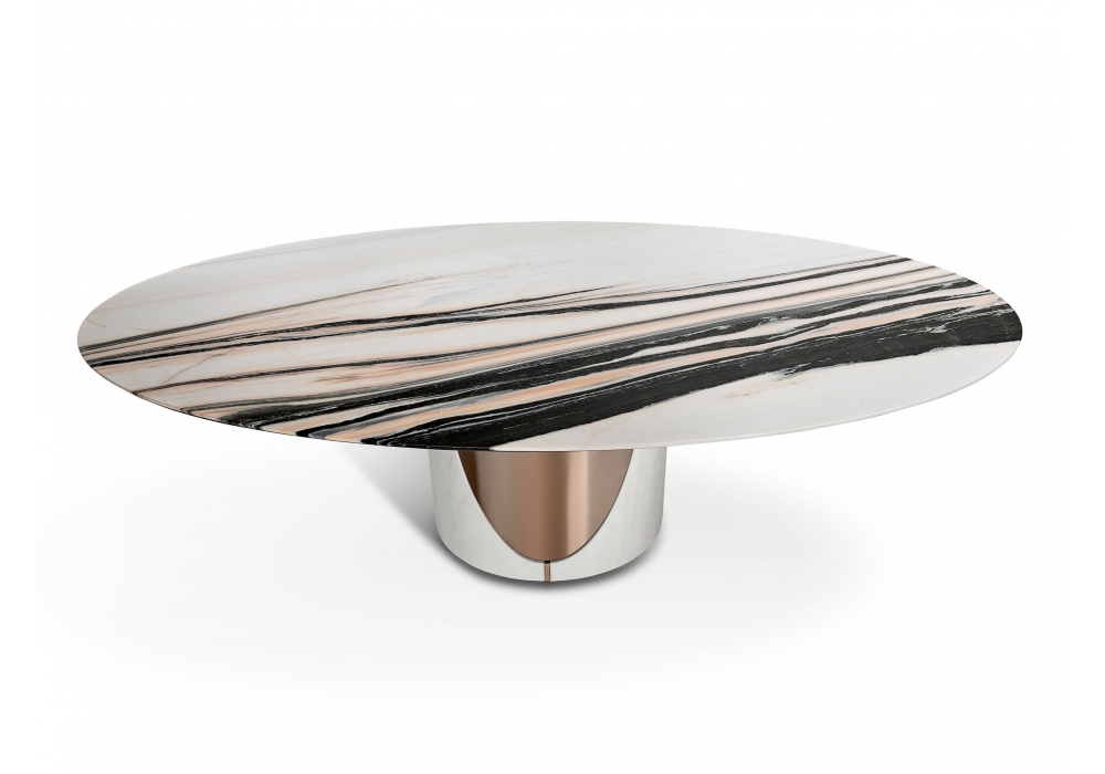 Cameron Marble designed by Alessandro La Spada for Visionnaire is a table with an oval or circular top in marble and a base in marble and steel. Cameron Marble is available in different models.