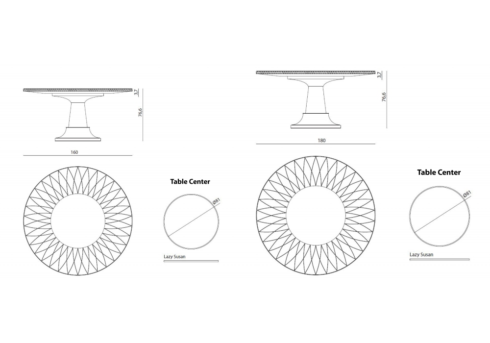 | Dimensions | Ø 160 x H 77 cm; Ø 180 x H 77 cm. |