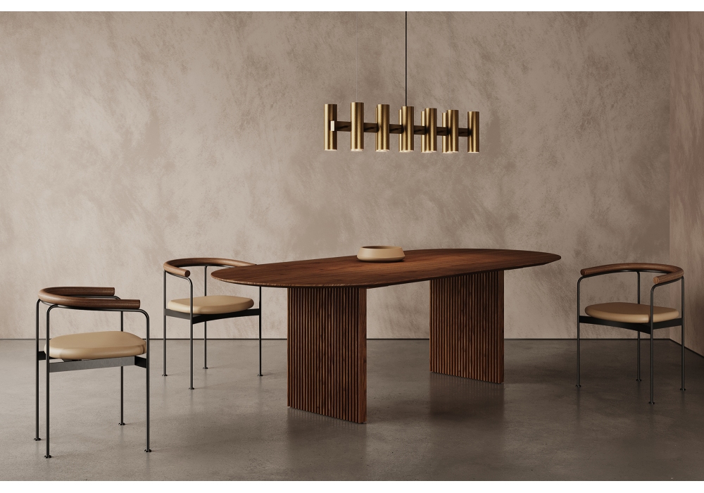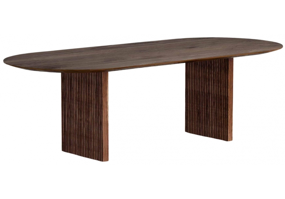 Ten designed by Christian Troels & Jacob Plejdrup for Dk3 is an oval table made of solid wood, available in different finishes and sizes, the possibility of adding an extension is also available.