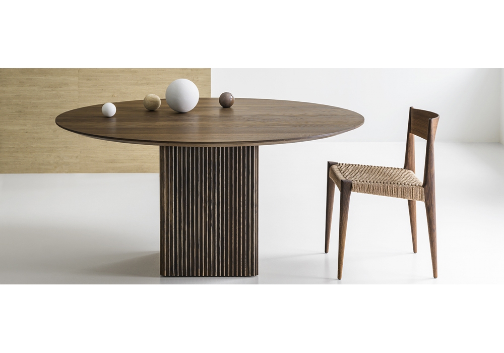 Ten designed by Christian Troels & Jacob Plejdrup for Dk3 is a round table made of solid wood, available in different finishes and sizes, the addition of extensions is also available.