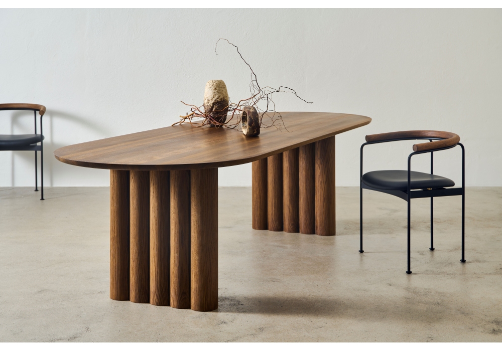 Plush designed by Jacob Plejdrup for Dk3 is an oval table made of solid wood available in different finishes and sizes, the addition of extensions is also available.