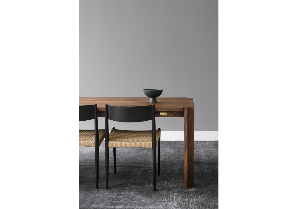 Jeppe Utzon 1 designed by Jeppe Utzon for Dk3 is a table made of solid wood with steel wire under the top. Available in different finishes and sizes, the possibility of adding an extension is also available.