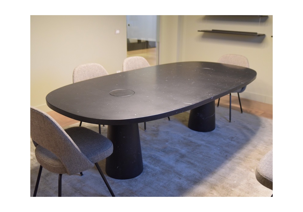 Eros designed by Angelo Mangiarotti for Agapecasa is a table made of marble in different finishes. It is characterized by one or more conical supports embedded in the top depending on the shape. Available in different models.