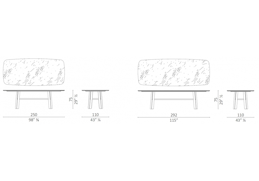 | Dimensions | • 250 x 110 x H 75 cm; • 292 x 110 x H 75 cm |