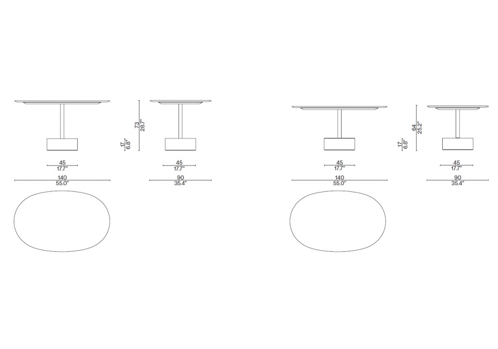 194 9 designed by Piero Lissoni for Cassina is an oval table made with marble base and wooden or marble top, metal stem. Available in different finishes and dimensions.
