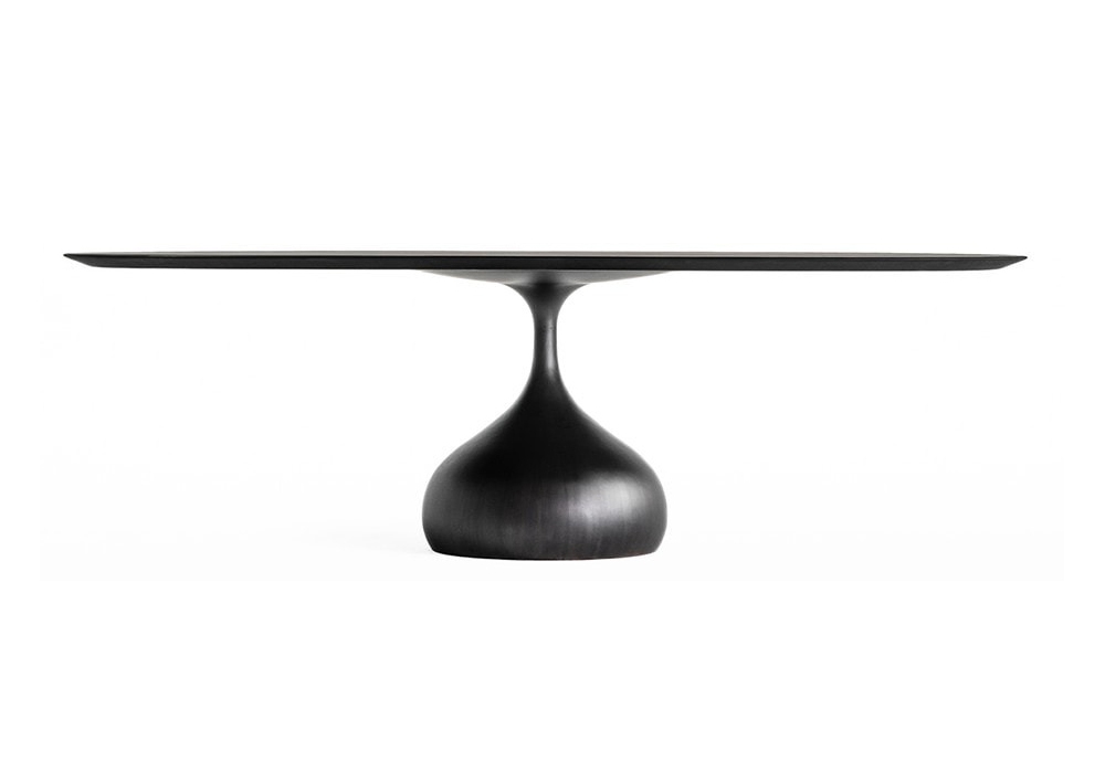 Raindrop Casting Bronze Ovale designed by Time & Style ēdition for DePadova is a circular table with a hand-polished cast bronze base in dark bronze or light bronze colour. The top is in solid oak stained snow white or charcoal gray finished with transparent varnish.