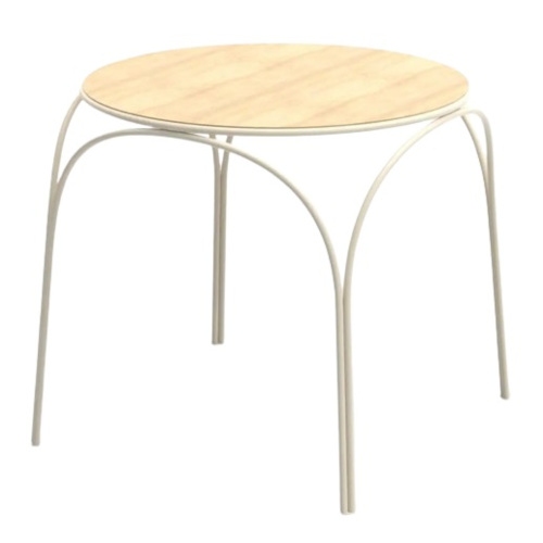 Ample designed by Luca Nichetto for Gebrüder Thonet Vienna is a bistro table with tubular metal structure and top in Iroko wood (for outdoor) and ash (for indoor). Available in different finishes and two variants.