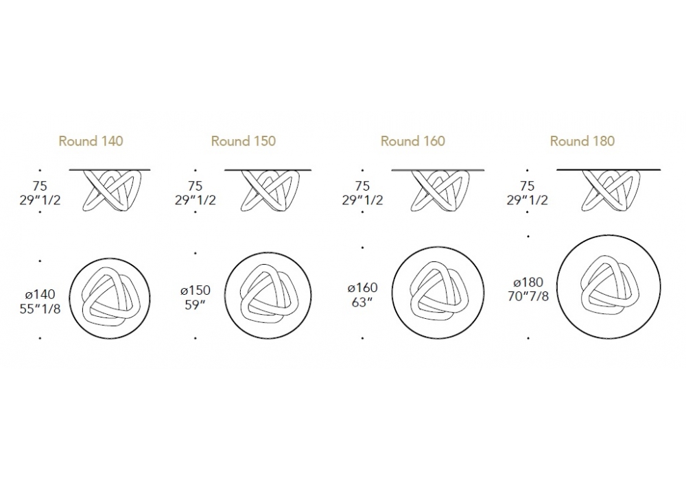 | Dimensions | Ø 140 x H 75 cm; Ø 150 x H 75 cm; Ø 160 x H 75 cm; Ø 180 x H 75 cm. |