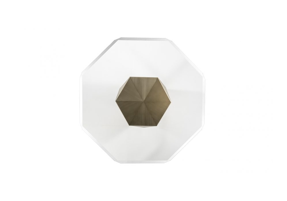 Origami 72 designed by Tulczinsky for Reflex Angelo is a dining table with wooden base in bronze, brass, dark brass, titanium or Canaletto Walnut/Canaletto Henné finish. Top available in transparent, extra-clear, smoked or Marmoreflex/Legnoreflex glass, in classic square or rectangular or octagonal/decagonal shapes with bevels.