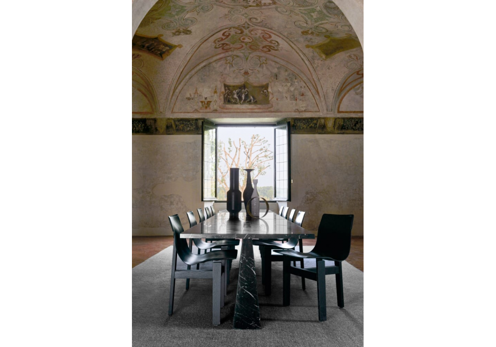 Incas designed by Angelo Mangiarotti for Agapecasa is a table made of marble in different finishes. The supports, with a square shape, fit into the top.