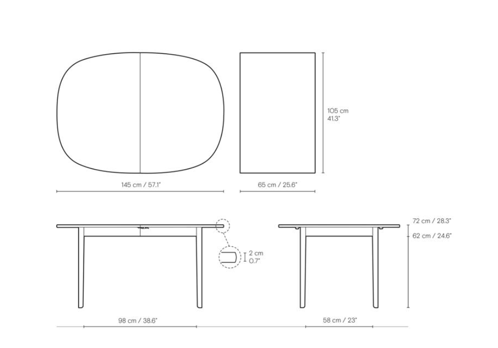OW224 designed by Ole Wanscher for Carl Hansen & Søn is a table made of oil-veneered oak. Base in solid wood. The table is designed for 2 extensions (including 1 black wooden support leg). Extensions in grey or black MDF or in oil-veneered oak.