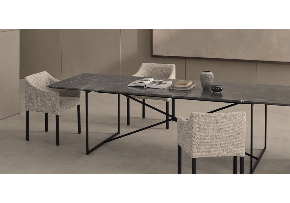 T.T.A. Stone designed by Mikal Harrsen for DePadova is a table made with a base with solid steel profiles powder coated in black or embossed white or liquid painted in brass color. and a marble top treated with water-repellent products or finished with matt polyester. Top equipped with a black HPL support. Available in different dimensions.