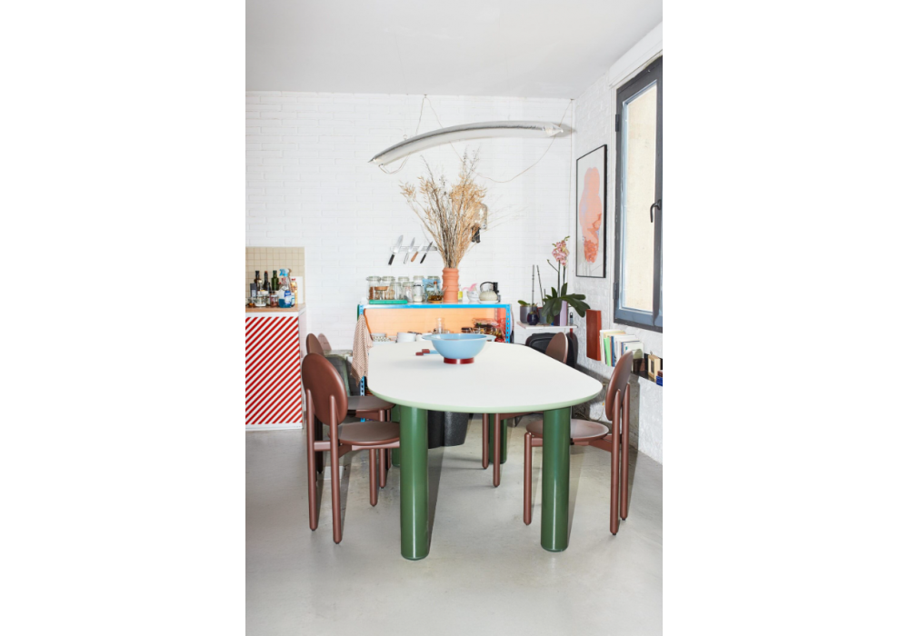 Eclipso designed by Jaime Hayon for BD Barcelona is a dining table with Fenix veneered MDF top and extruded aluminum legs painted in a glossy finish.