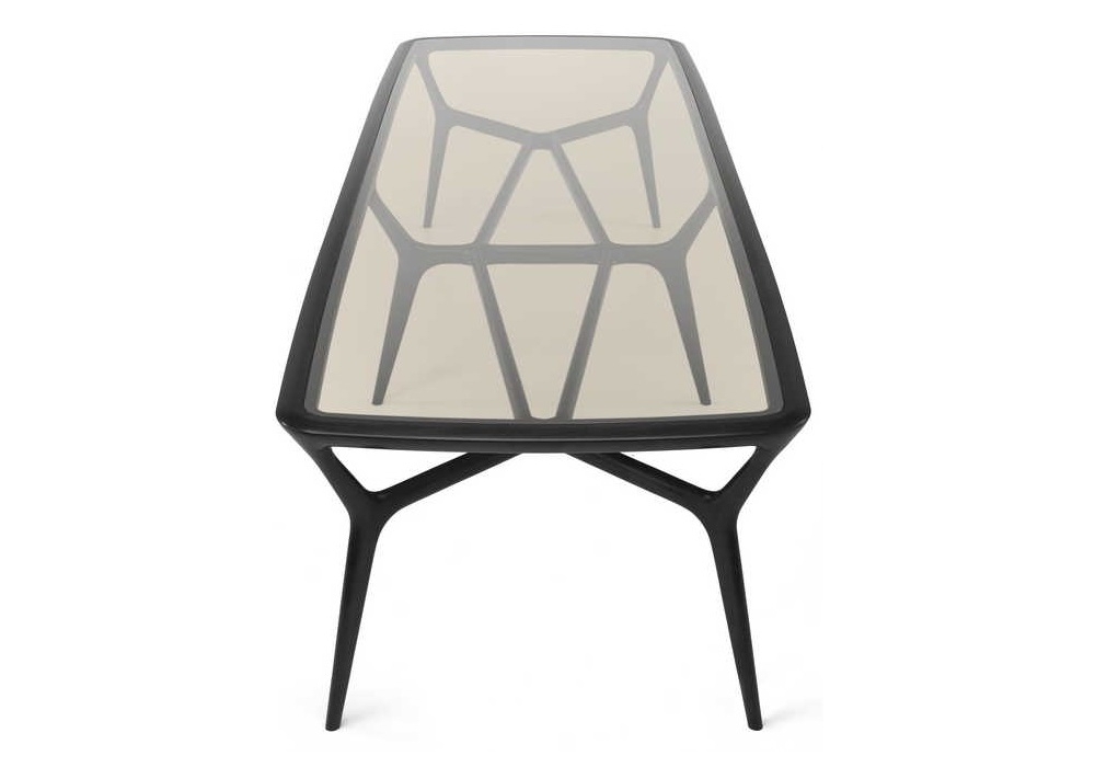 Sevenmiles by Ceccotti Collezioni is a table made in solid American walnut or ash, visarm glass top: transparent, bronzed or smoked. W 350, available only in transparent glass. On request, the top is also available in wood.