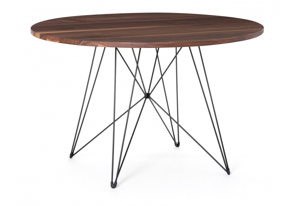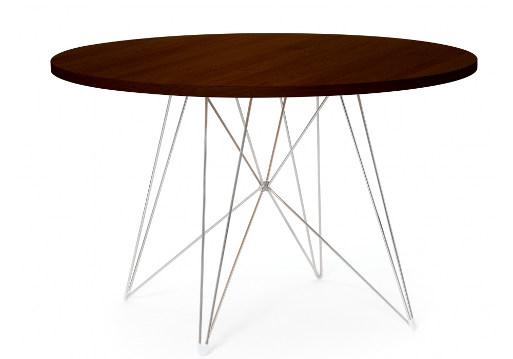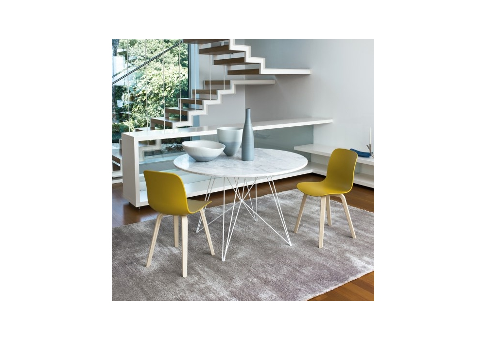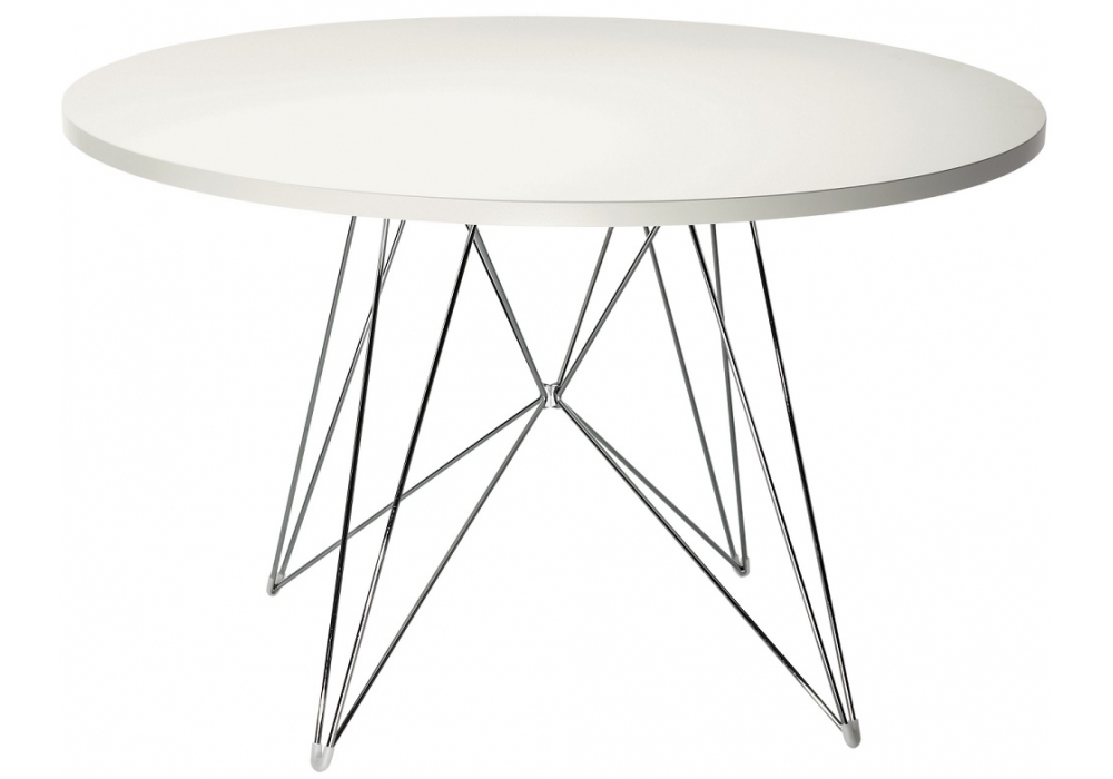 XZ3 designed by Magis is a table with a round shape with structure in chromed, painted, golden or coppered steel rod. Top in Carrara marble, solid walnut or MDF. Available in different finishes.